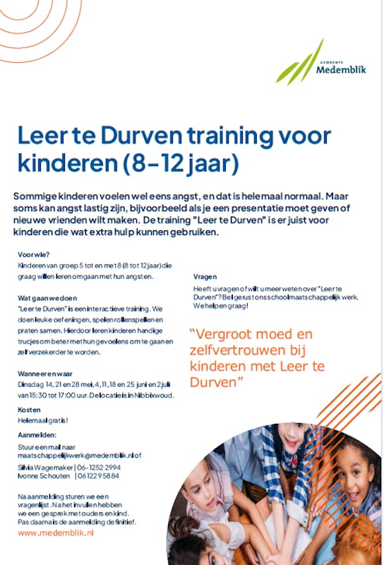 Wil je je kind aanmelden voor de "Leer te Durven" training of heb je nog vragen?