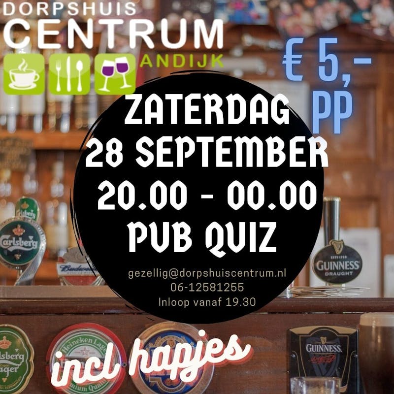 Pupquiz. Test je algemene kennis tegen andere teams in 10 rondes.