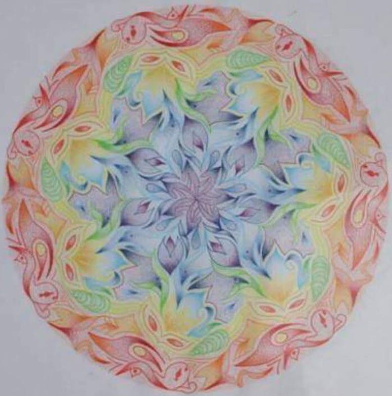 Het woord mandala komt uit de oud-Indische taal Sanskriet en betekent cirkel. Een mandala begint in het midden, waar vandaan je begint te tekenen en te kleuren vanuit je gevoel. Bezig zijn met kleuren werkt helend, doordat de trillingen van de kleuren effect hebben op het lichaam.