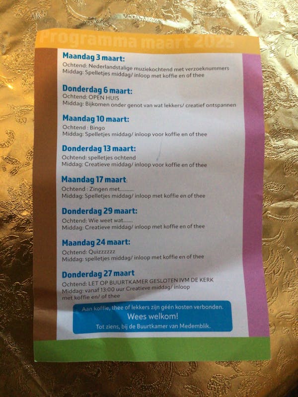 Activiteiten rooster van Maart