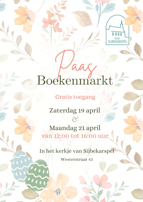 Tijdens het paasweekend is het kerkje van Sijbekarspel twee middagen geopend i.v.m. een paaseditie van de ‘Boekenmarkt’. Voorgaande jaren vonden de boekenmarkten vaak op één dag, meestal de zondag, plaats. Op veler verzoek hebben we daar nu een zaterdag aan toegevoegd.