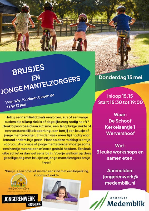 Heb jij een familielid zoals een broer, zus of één van je ouders die al lang ziek is of dagelijks zorg nodig heeft? Denk bijvoorbeeld aan autisme, een langdurige ziekte of een verstandelijke beperking, dan ben jij een brusje of jonge mantelzorger. Er is dan vaak meer tijd nodig voor iemand anders in je gezin. Maar op deze middag is er tijd voor jou. Als brusje of jonge mantelzorger moet je soms een handje meehelpen of extra geduld hebben. Een leuk uitje schiet er dan wel eens bij in. Voel je welkom op deze gezellige dag met brusjes en jonge mantelzorgers om je heen!