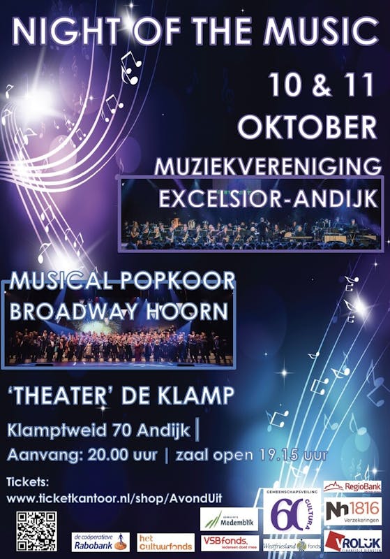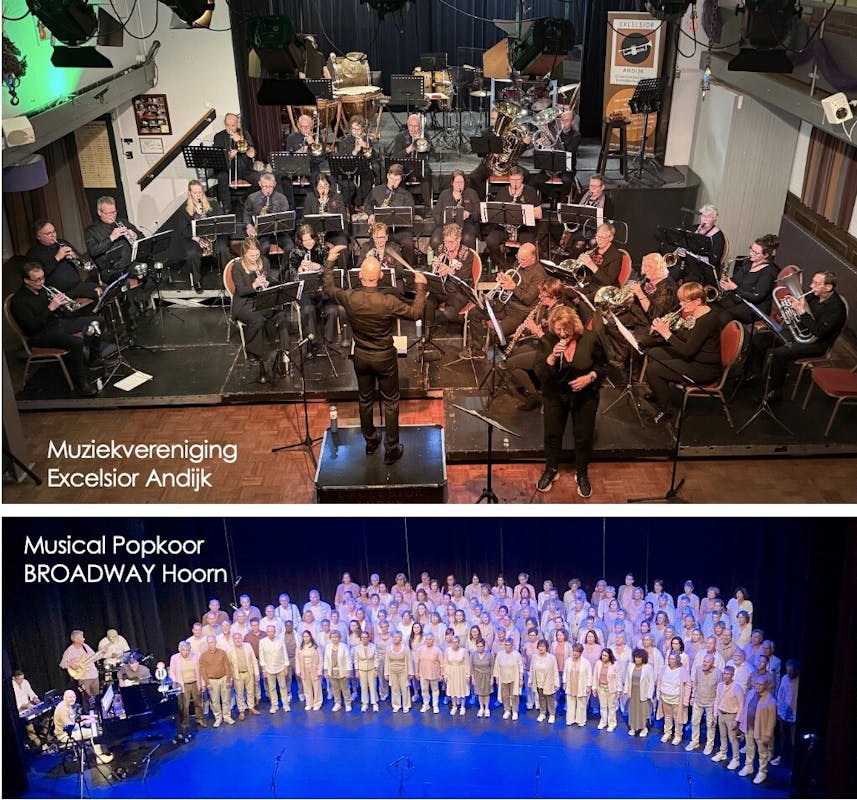Muziekvereniging Excelsior Andijk en Musical Popkoor BROADWAY uit Hoorn gaan samenwerken met een unieke theaterbelevenis. Gezamenlijk geven zij op vrijdag 10 en zaterdag 11 oktober 2025 in sporthal de Klamp te Andijk twee concerten voor muziekliefhebbers: ‘NIGHT OF THE MUSIC’