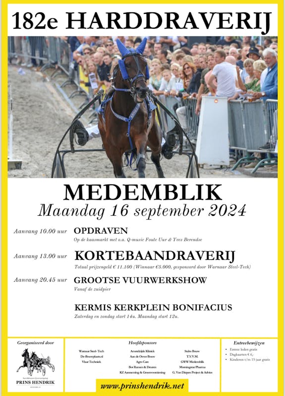 Op maandag 16 september organiseren wij de 182e Harddraverij van Medemblik. We hebben een geweldig programma!