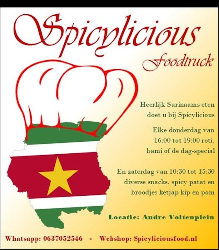 Deze zaterdag staan wij tot 14:00 ook op het Andre Voltenplein met diverse lekkernijen en Surinaamse broodjes met bijv. Pom of ketjap kip, Surinaamse hapjes en roti-rol