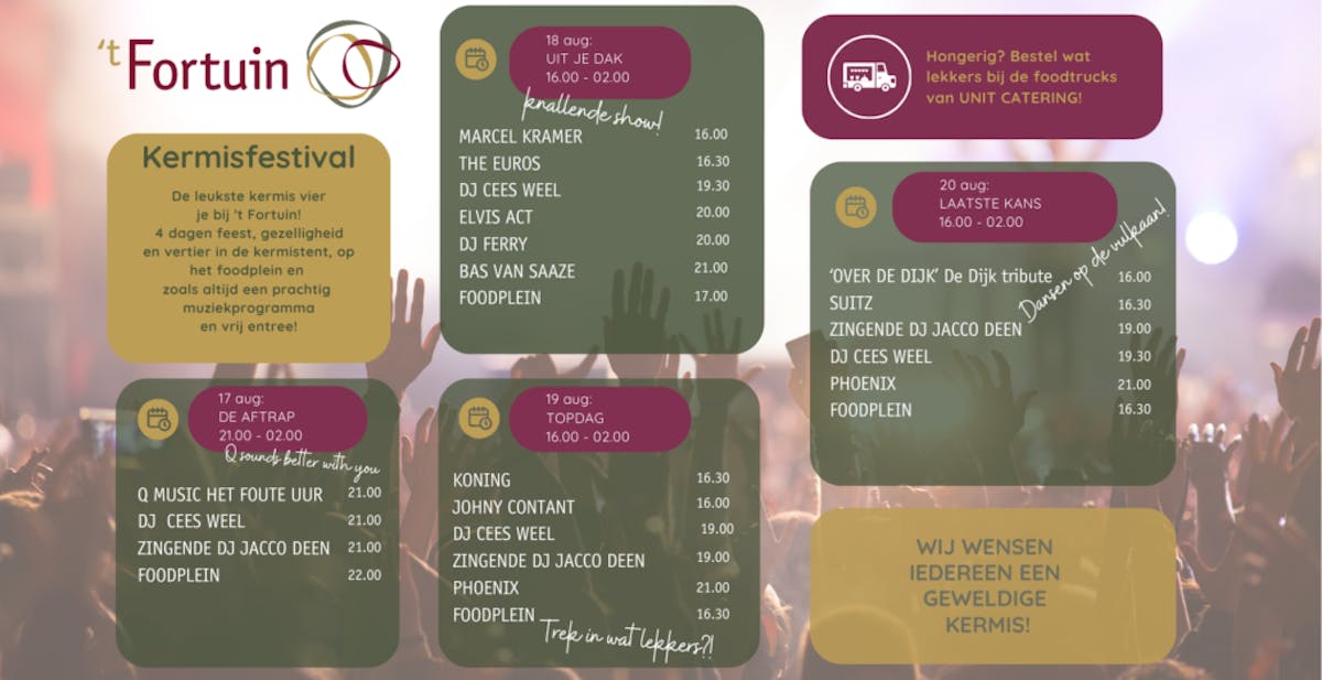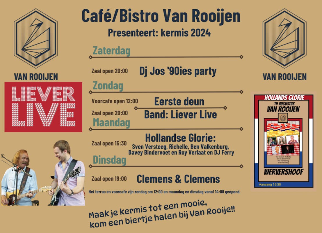 De horeca ondernemers hebben voor de kermisdagen weer een mooi programma samengesteld. Wij hebben ze voor u op een rijtje gezet.